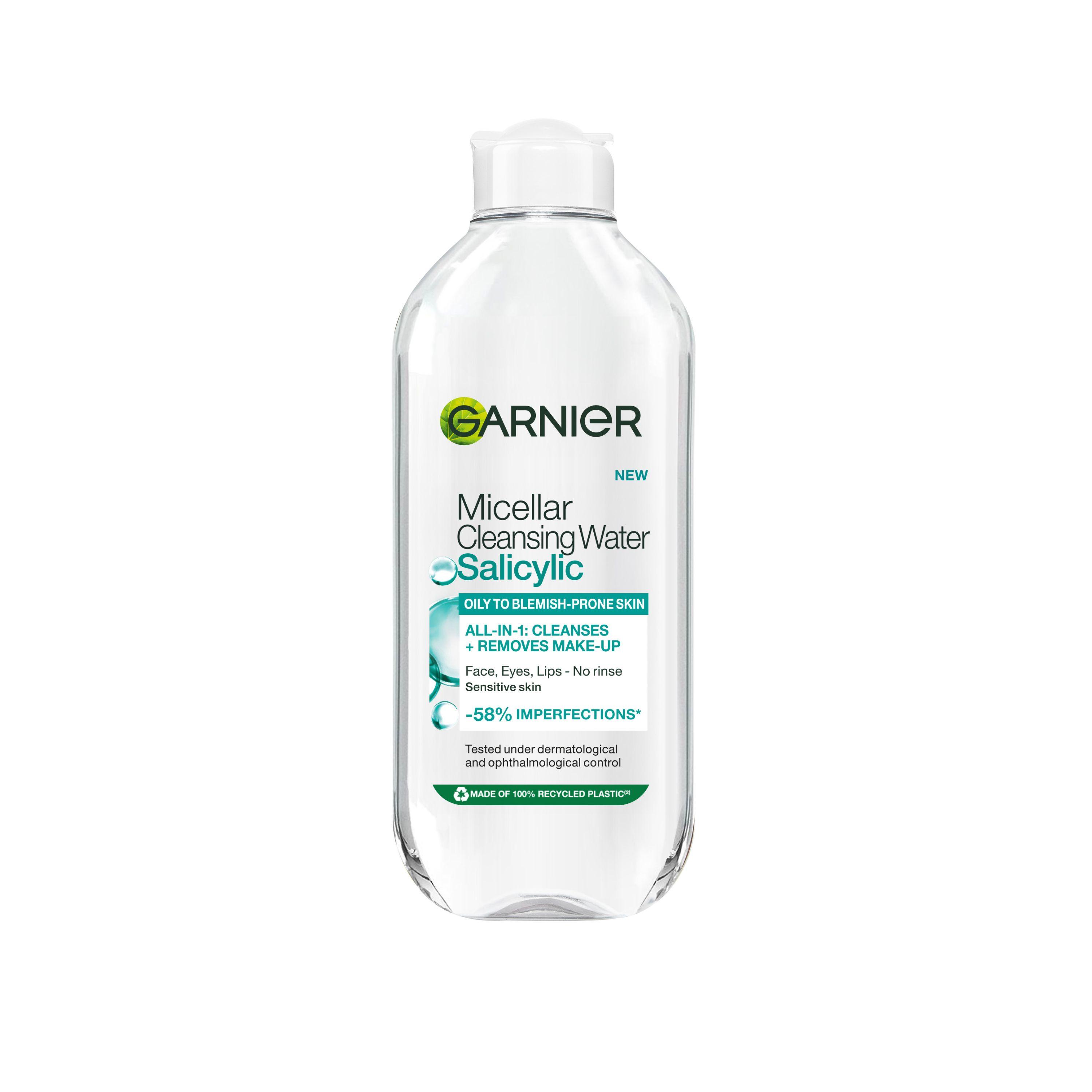 - Garnier Micellar Cleansing Water Salicylic – Nyhet! Rengör, tar bort smink och hjälper till att minska orenheter*. Formula med salicylsyra.