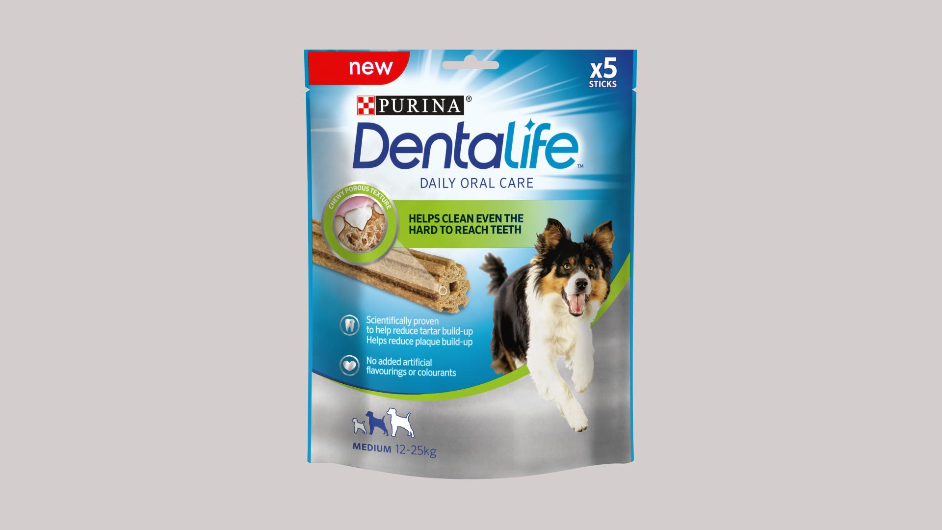 Purina DentaLife är en helt ny tuggpinne som rengör hundens tänder effektivt. Dessutom är DentaLife bra för din hund tack vare en låg fetthalt och att den är helt fri från kemiskt aktiva ingredienser och artificiella färg- eller smakämnen. Det ska bli väldigt spännande att få se vad du och din hund tycker om vår tuggvänliga nyhet.
