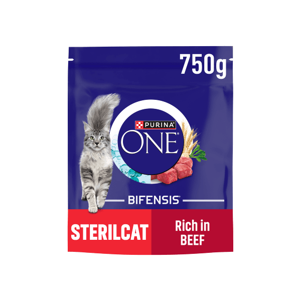 - Sterilcat – PURINA ONE Sterilcat / Neutered Cat har utvecklats med en anpassad näringsprofil och bidrar till att upprätthålla en hälsosam metabolism efter sterilisering/kastrering. Viktkontroll stöds av ett högre innehåll av protein i förhållande till fett (+15 % jämfört med Adult-formulan), förutsatt att utfodringsguiden följs. Ett balanserat mineralinnehåll bidrar samtidigt till att främja friska urinvägar.